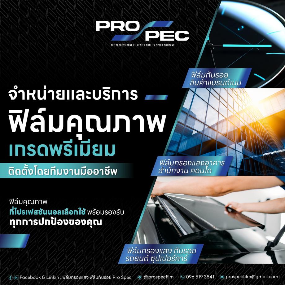 แบรนด์ผู้เชี่ยวชาญด้านฟิล์มคุณภาพระดับมืออาชีพ Pro Spec ดำเนินการติดตั้งฟิล์มคุณภาพเกรดพรีเมียม โดยยึดมั่นในคำว่า “THE PROFESSIONAL FILM WITH QUALITY SPECS COMPANY” และได้รับความไว้วางใจจากช่างและลูกค้าที่เน้นคุณภาพมากกว่าปริมาณ