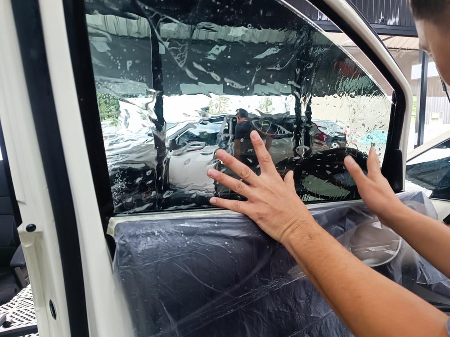 วัดและตัดฟิล์ม – ใช้เครื่องตัดตามขนาดรถอย่างแม่นยำ